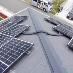 現調時は屋根の形状や材質、経年数、不具合箇所などはないか、家周りはパワーコンディショナーいわゆるパワコンを設置しますので、壁の状況や設置位置はどうか、宅内の分電盤と電気系統の配線など現状を確認します。特に屋根の上はお施主様でもめったに見ることは少ないでしょう。瓦屋根の場合など、瓦がずれていたり、破損していた、、なんてこともありますので、その場合はお施主様に報告し、瓦の差し替えなど行うケースもあります。