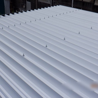 カーポートの屋根は折版屋根というもので、金属の板を折り曲げ加工した屋根材です。よく工場や店舗、体育館などの屋根に多く見られる屋根材です。メリットとしましては、工期が短い、雨漏りが起こりにくい、工事価格も安く抑えられる。といったメリットがあります。