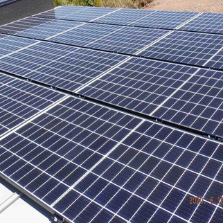 屋根に太陽光パネルを固定するための架台を設置します。太陽光パネルをしっかりと固定させ設置完了。