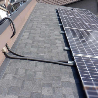 屋根はコロニアル、そこへ太陽光パネルを設置するための架台の基礎を作ります。防水処理を確実にしっかりと行います。