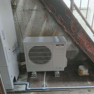 今回は外階段下のかなりタイトな場所でしたが、しっかりとエコキュートの筐体を設置致しました。